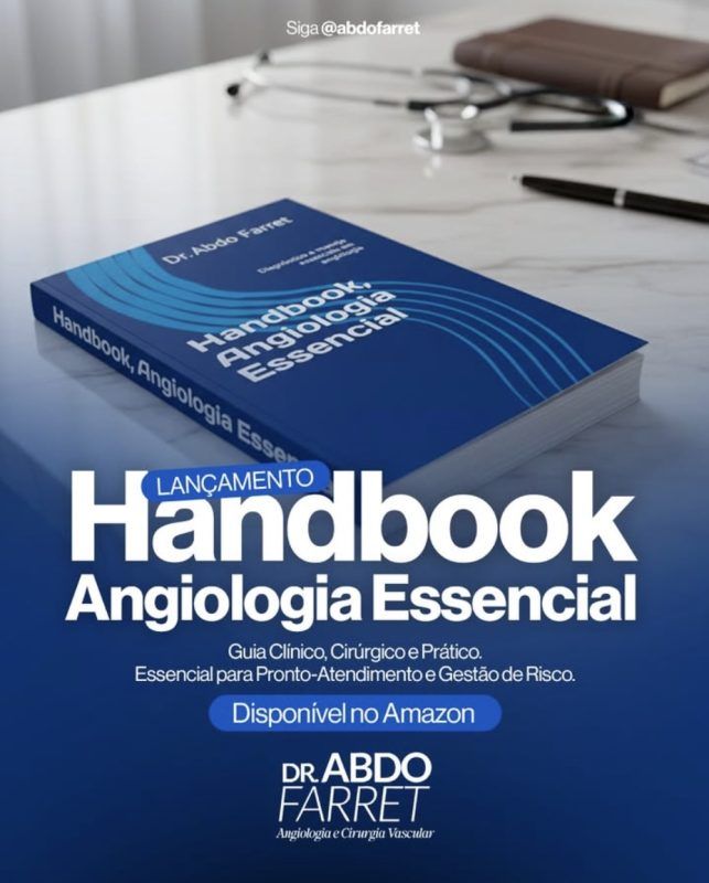 Tenho a satisfação de apresentar meu novo livro, o Handbook, Angiologia Essencial. As doenças vasculares são extremamente prevalentes e quando não diagnosticadas e tratadas precocemente podem trazer consequências graves